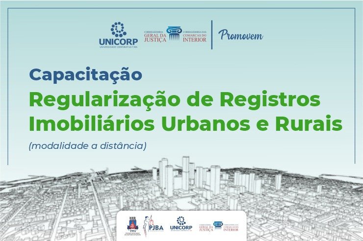 Os interessados em participar da capacitação sobre regularização de registros imobiliários urbanos e rurais, promovida pela Universidade Corporativa (Unicorp) do Poder Judiciário da Bahia (PJBA), em parceria com as Corregedorias Geral e do Interior, têm até a próxima sexta-feira (30) para se inscrever.