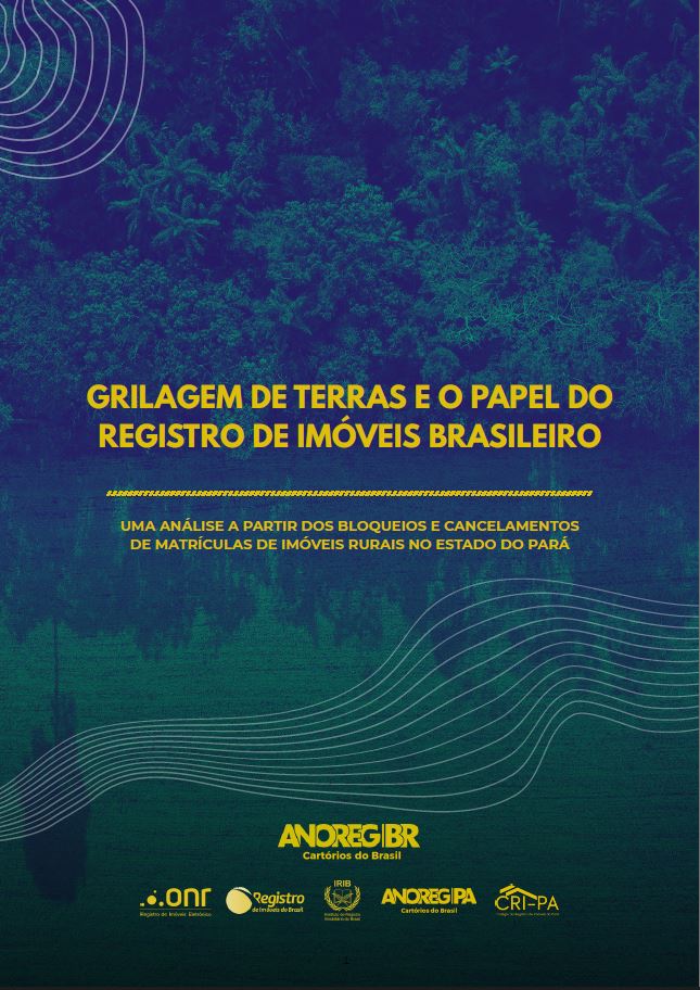 A Associação dos Notários e Registradores do Brasil (ANOREG/BR) publicou o e-book intitulado “Grilagem de Terras e o Papel do Registro de Imóveis Brasileiro: uma análise a partir dos bloqueios e cancelamentos de matrículas de imóveis rurais no Estado do Pará”, coordenado por Moema Locatelli Belluzzo. A obra, publicada em conjunto com o Instituto de Registro Imobiliário do Brasil (IRIB); o Registro de Imóveis do Brasil (RIB); o Operador Nacional do Sistema de Registro Eletrônico de Imóveis (ONR); a Associação dos Notários e Registradores do Estado do Pará (ANOREG/PA) e o Colégio de Registradores de Imóveis do Pará (CRI-PA), está disponível para download.