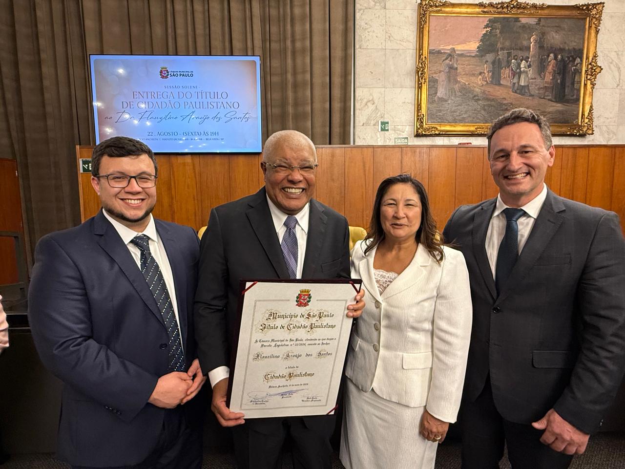 Conforme noticiado anteriormente, o Primeiro Oficial de Registro de Imóveis de São Paulo, Flauzilino Araújo dos Santos, recebeu da Câmara Municipal de São Paulo, o título de Cidadão Paulistano. Na ocasião, o Instituto de Registro Imobiliário do Brasil (IRIB) e o Operador Nacional do Sistema de Registro Eletrônico de Imóveis (ONR) estiveram presentes à solenidade.