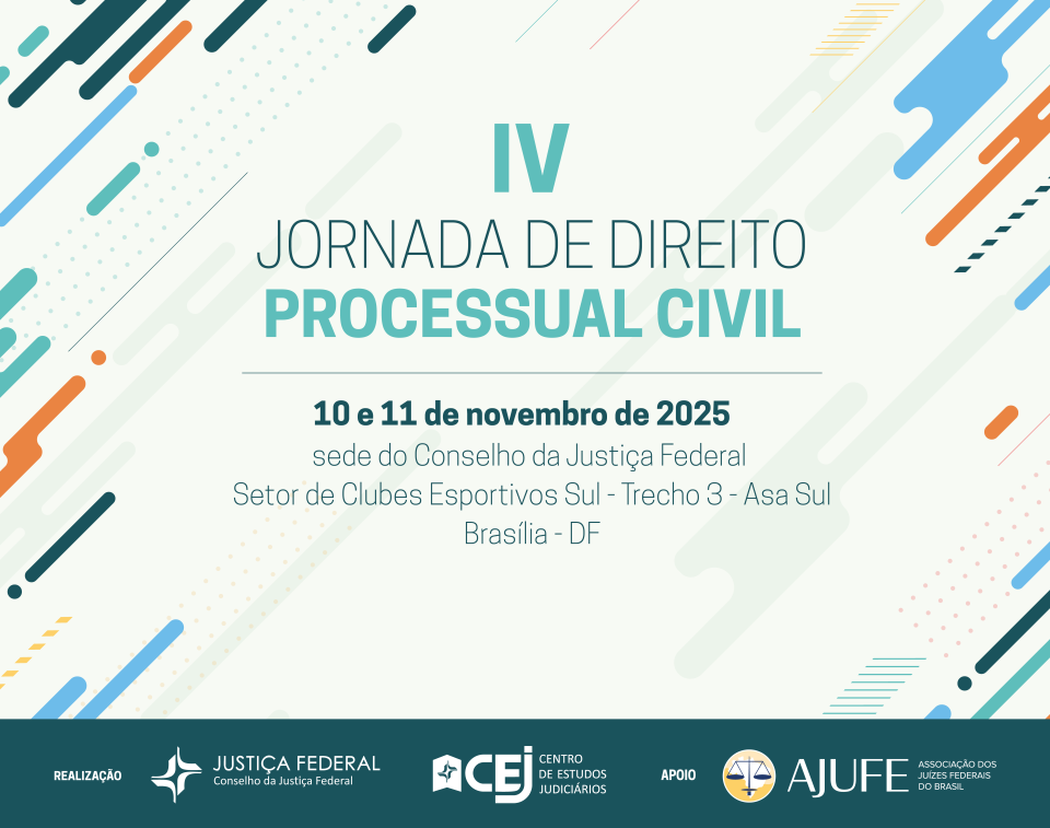 O Centro de Estudos Judiciários do Conselho da Justiça Federal (CEJ/CJF) prorrogou o prazo para envio de propostas de enunciados para a IV Jornada de Direito Processual Civil, que será realizada com o apoio da Associação dos Juízes Federais do Brasil (AJUFE), nos dias 10 e 11 de novembro, na sede do CJF, em Brasília/DF. O novo prazo para envio das propostas se encerrará no dia 07 de setembro.