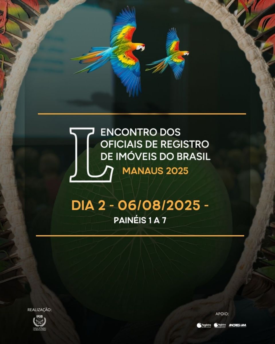 No dia 06/08/2025, na cidade de Manaus, capital do Amazonas, teve início o primeiro ciclo de palestras do L ENCONTRO DOS OFICIAIS DE REGISTRO DE IMÓVEIS DO BRASIL, evento promovido pelo Instituto de Registro Imobiliário do Brasil (IRIB) na cidade de Manaus/AM, com o apoio do Registro de Imóveis do Brasil (RIB), do Registro de Imóveis do Brasil – Seção Amazonas (RIB-AM) e da Associação dos Notários e Registradores do Estado do Amazonas (ANOREG-AM). Este primeiro dia teve como temas a adoção de boas práticas no Registro de Imóveis, as ações do Fórum Nacional de Desenvolvimento Imobiliário (FNDI), o Provimento CN-CNJ n. 195/2025, a ratificação de imóveis rurais em faixa de fronteira, a reforma do Código Civil e terras públicas.
