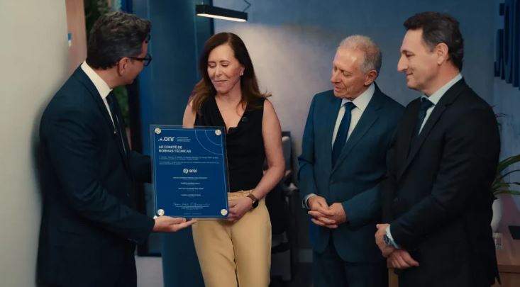 Na última terça-feira (09.12), o Operador Nacional do Sistema de Registro Eletrônico de Imóveis (ONR) realizou, em seu escritório em São Paulo, um ato de homenagem ao Comitê de Normas Técnicas do SREI, em reconhecimento ao trabalho de modelagem de dados que embasa a nova etapa do Registro Eletrônico de Imóveis no Brasil. Na ocasião, a registradora Adriana Aparecida Perondi Lopes Marangoni recebeu, em nome do Comitê, uma placa coletiva de agradecimento, em ato conduzido pelo presidente do ONR, Juan Pablo Correa Gossweiler, ao lado do vice-presidente e diretor de tecnologia, Fernando Pereira do Nascimento, e do presidente do Conselho Deliberativo, João Pedro Lamana Paiva.