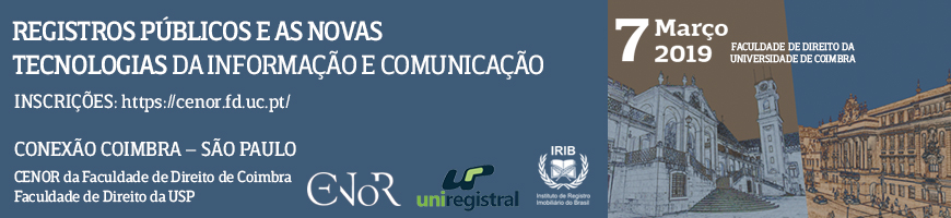 O Centro de Estudos Notariais e Registais (CeNoR), da Faculdade de Direito de Coimbra, e a Faculdade de Direito da USP promovem o simpósio “Registros públicos e as novas tecnologias da informação e comunicação”, sob coordenação da professora doutora Mónica Jardim. O evento acontece em Coimbra, Portugal, no dia 7 de março, e as inscrições poderão ser feitas em breve.