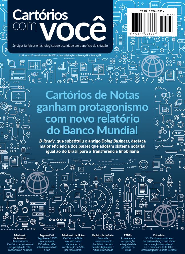 A 39ª edição ainda traz, dentre outras, entrevista com o Corregedor-Nacional de Justiça, Ministro Mauro Campbell Marques, e com o Presidente do Colégio Permanente de Corregedores-Gerais dos Tribunais de Justiça do Brasil (CCOGE), Desembargador Gilberto Barbosa, além de matéria sobre o 1º Exame Nacional dos Cartórios, bem como sobre outros temas relevantes para o Registro Imobiliário.