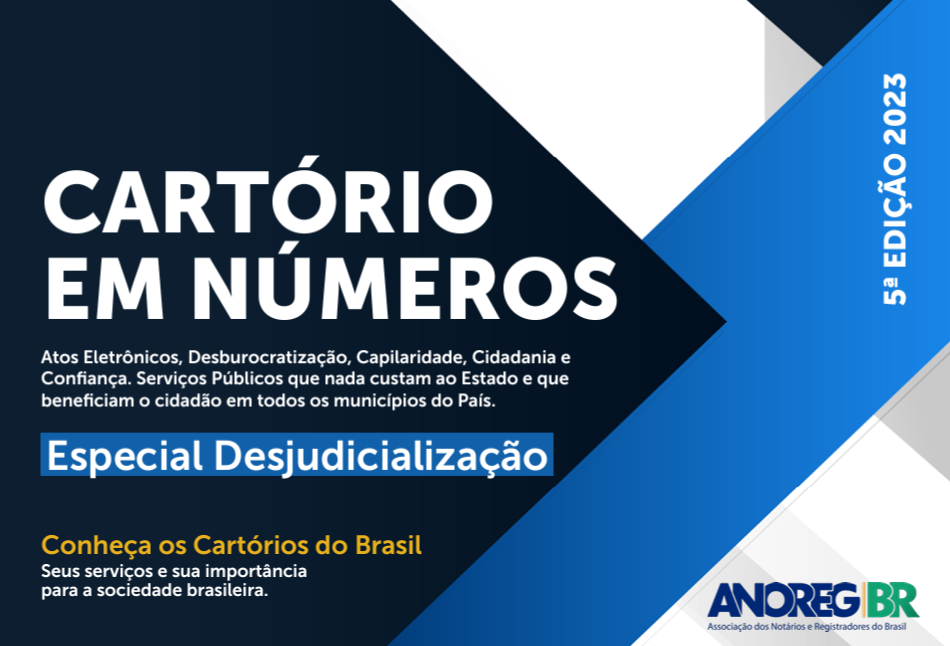 A Associação dos Notários e Registradores do Brasil (ANOREG/BR) disponibilizou a 5ª edição do relatório intitulado “Cartório em Números”, relativo ao ano de 2023. A publicação tratou, exclusivamente, da desjudicialização de procedimentos e os seus primeiros resultados práticos e econômicos observados.