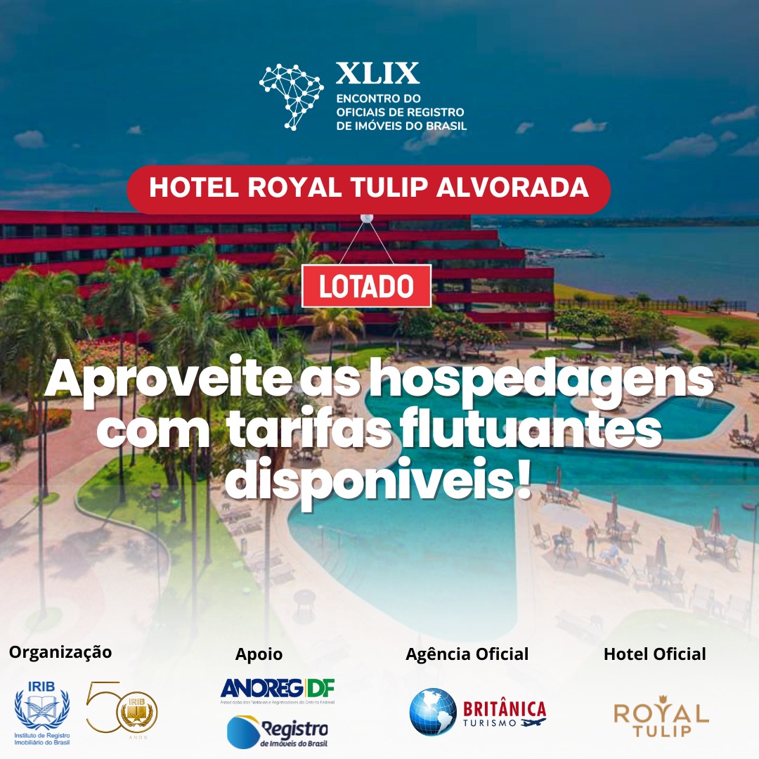XLIX ENCONTRO DOS OFICIAIS DE REGISTRO DE IMÓVEIS DO BRASIL: ACOMODAÇÕES COM TARIFAS ESPECIAIS NO HOTEL DO EVENTO ESTÃO ESGOTADAS!