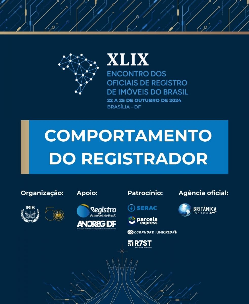 O XLIX Encontro dos Oficiais de Registro de Imóveis do Brasil, evento promovido pelo Instituto de Registro Imobiliário do Brasil (IRIB), que será realizado entre os dias 22 e 25 de outubro, no Royal Tulip Brasília Alvorada, em Brasília/DF, terá um painel dedicado a abordar temas relativos ao comportamento do Registrador de Imóveis e à sua imagem perante a sociedade. O painel acontecerá no dia 24/10/2024 e será apresentado pela Diretora de Comunicação do Registro de Imóveis do Brasil (RIB) e da Associação dos Registradores de Imóveis do Paraná (ARIPAR), Erica Stocco. Além disso, o tradicional evento promovido pelo IRIB, com o apoio da Associação dos Notários e Registradores do Distrito Federal (ANOREG/DF) e do RIB, tem como objetivo, além de promover a atualização profissional e a troca de experiências entre os seus participantes, celebrar o 50º ANIVERSÁRIO do Instituto!